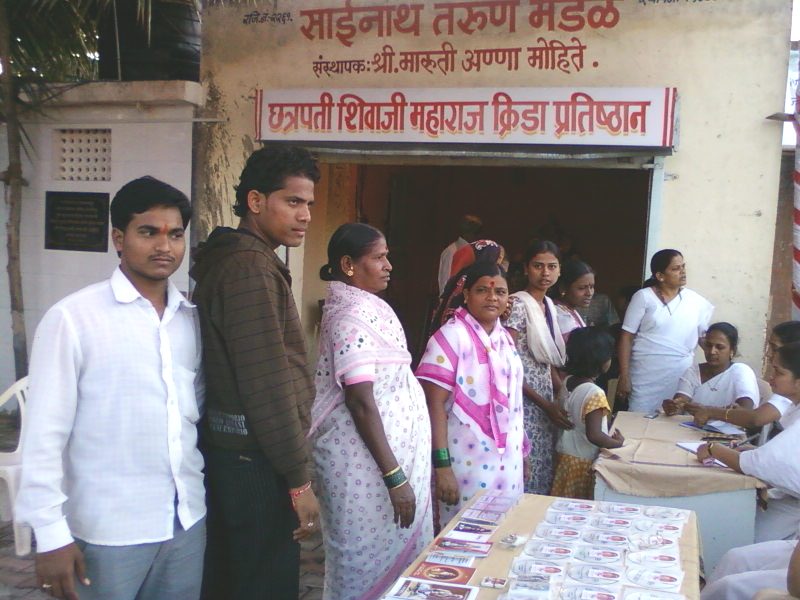 BY the Grace of Shri Kaka Maharaj, a free medical camp for Women was organized by P. Pu. Shri Kaka Maharaj Sewa Parivar. The Camp was held for the Poor and needy Women in the Wadar Wasti of Karve Nagar and was held at the Shri. Saibaba Temple at Karvenagar in the vicinity of the Trustees, Mr. & Mrs. Mohite. The camp started with introduction about Sadguru Shri. Kaka Maharaj and message on the teachings of Sadguru Kaka Maharaj. The Camp was a grand success with over 100 women participating in the camp. Everybody who attained the camp got proper advice on their health from well qualified Doctors and few tests were done wherever required.